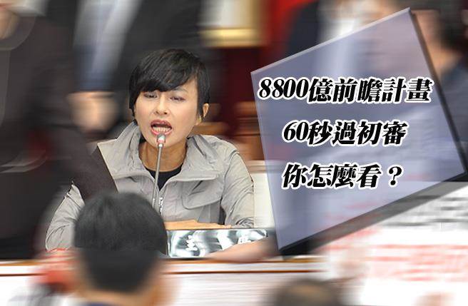 目前送來的子計畫沒有完整KPI(關鍵績效指標),光是軌道建設就花了4241億元,也未像其他先進國家一樣運用大數據進行軟硬體整合,「8年後這個計畫還適用嗎?」
